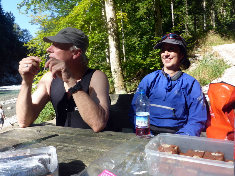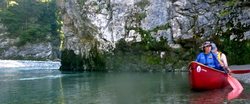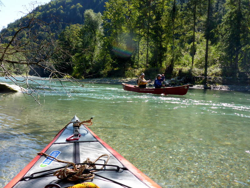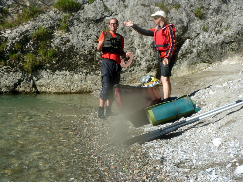 Tückisch erwiesen sich Verschneidungen die durch den stark mäandernden Fluss entstehen, und nicht leicht zu erkennen sind – bei hohem Wasserstand kann das gefährlich sein. In unserem Fall führte es zu einem erfrischenden Bad, ohne weitere Folgen. Die Nachbesprechung ergab, dass es sich um ein Kommunikationsproblem beim einmünden in den Fluss gehandelt hat.